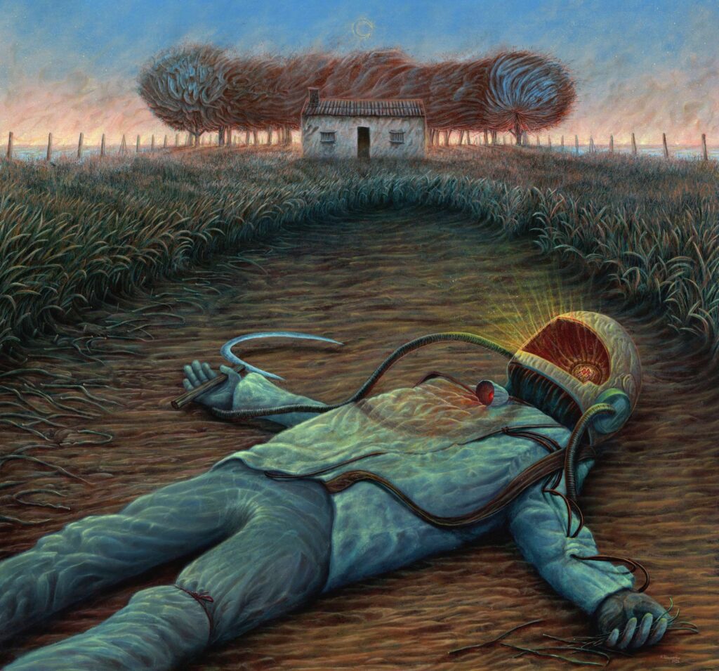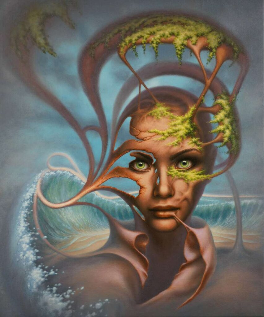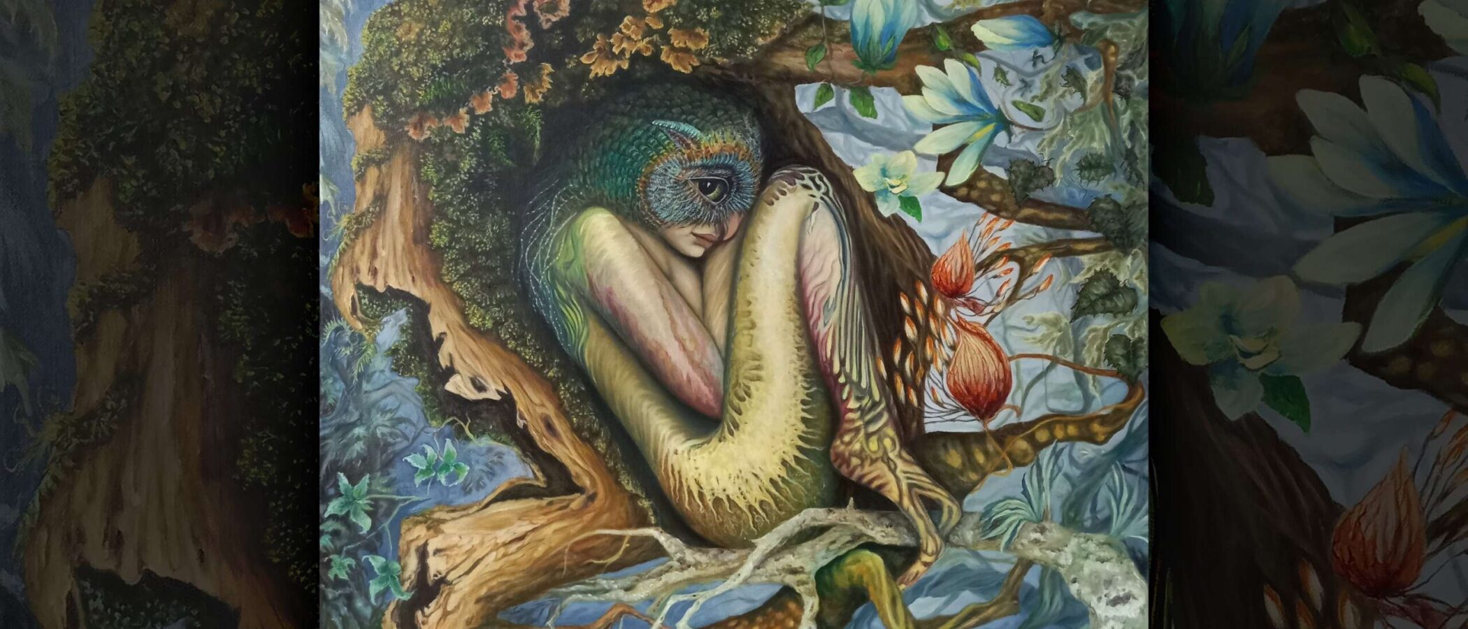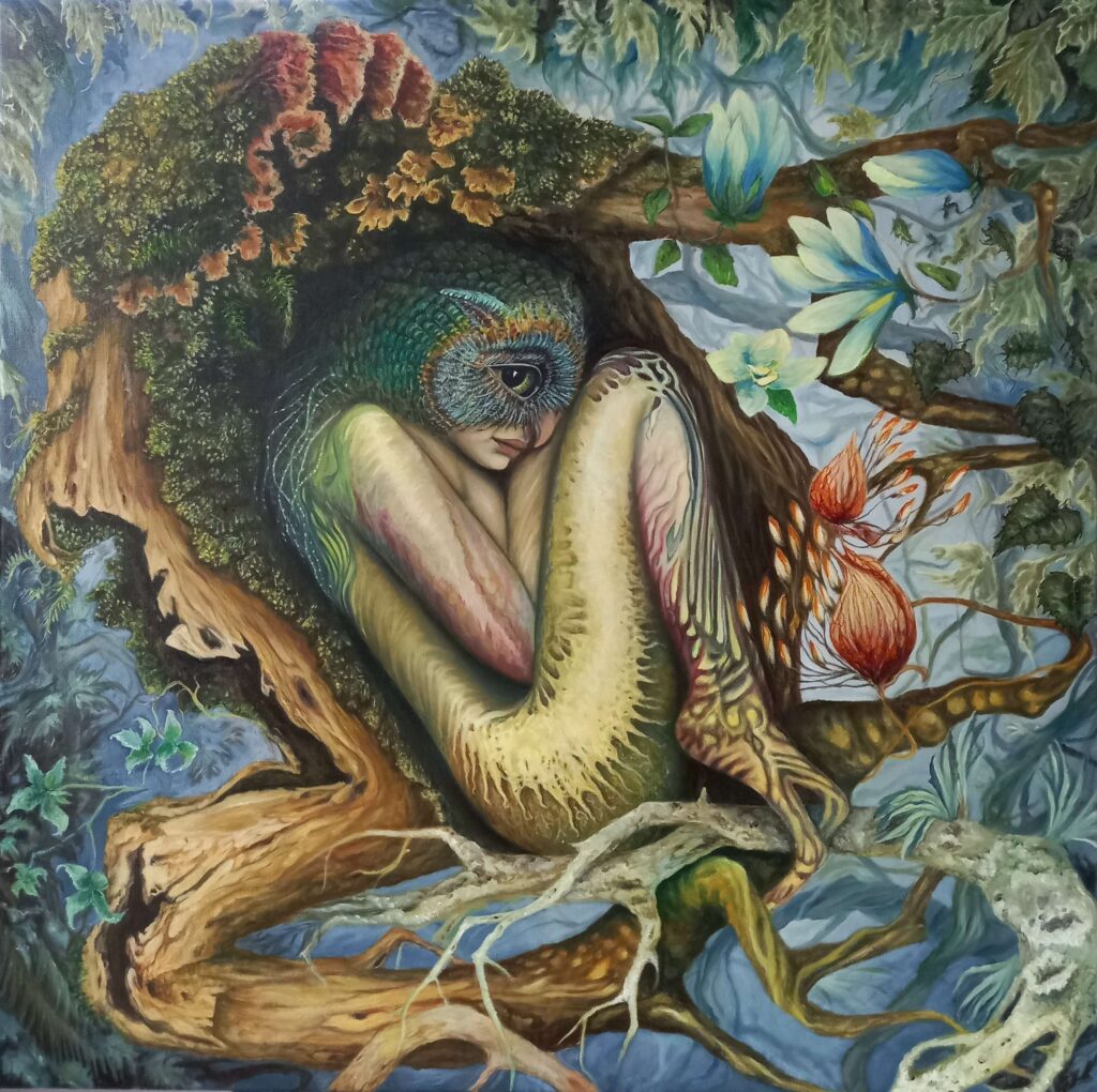 ‘Fusion of Imagination’ is a group of male and female painters from different parts of Poland, focused around surrealist art in the broadest sense. Our common aim is to present interesting and thought-provoking work that is at the same time accessible to the viewer. The work of ‘Fusion’ is characterised by the diversity of the themes explored. The works are a cross-section of surrealist painting, ranging from fantasy or magical realism, through references to science or science-fiction, to gothic stylistics, to expressive works bordering on abstraction. In our paintings, familiar pictorial motifs interweave with pop culture, and the dialogue of personalities, conventions and styles produces new, surprising display effects. The group’s paintings are first and foremost records of dreams, memories and visions from the artists’ subconscious, afterimages of imagined worlds. Exploring contemporary means of expression, we enrich the exhibitions with large-format reproductions of the works or video installations, inviting the viewer to delve into the creative process and enter into a given image.